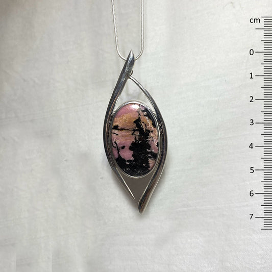 Ornate Sterling Silver Oval Rhodonite Pendant