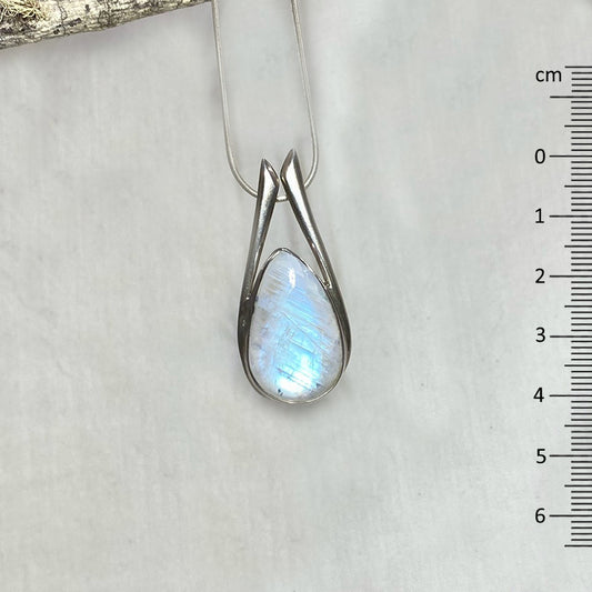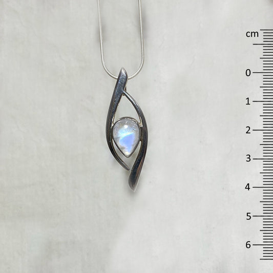 Ornate Sterling Silver Pear Shaped Rainbow Moonstone Pendant
