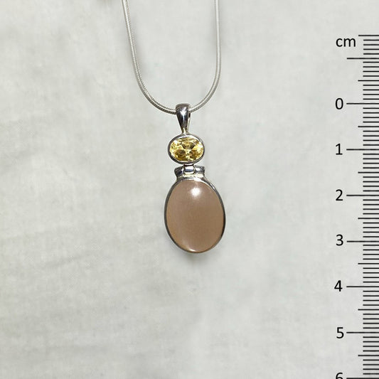 Oval Peach Moonstone & Faceted Citrine Pendant