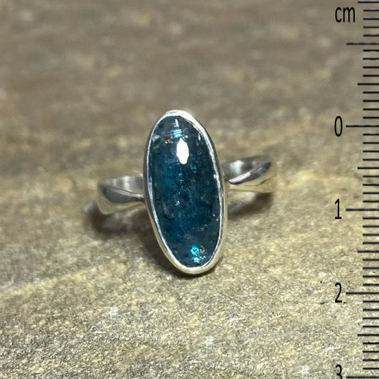 Oval Green Kyanite Swirling Sterling Silver Ring- Size 7.5