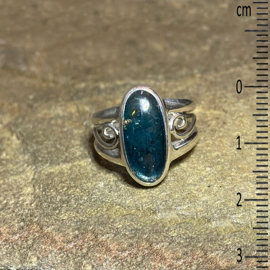 Oval Green Kyanite Swirling Sterling Silver Ring- Size 8.5