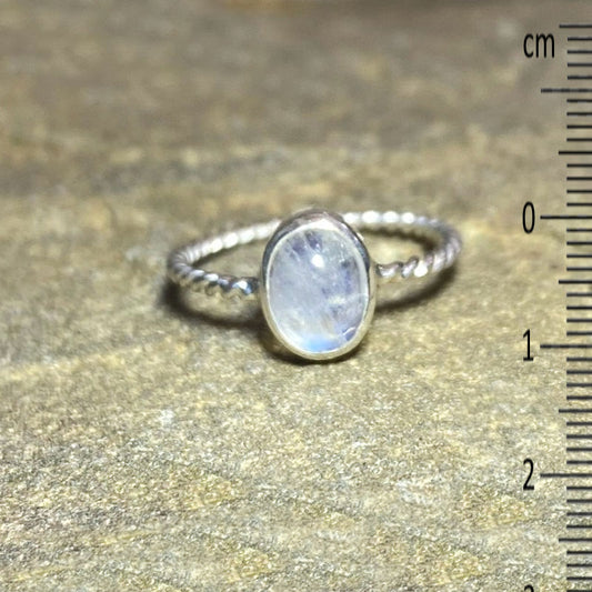 Oval Rainbow Moonstone Swirling Sterling Silver Ring- Size 8.5