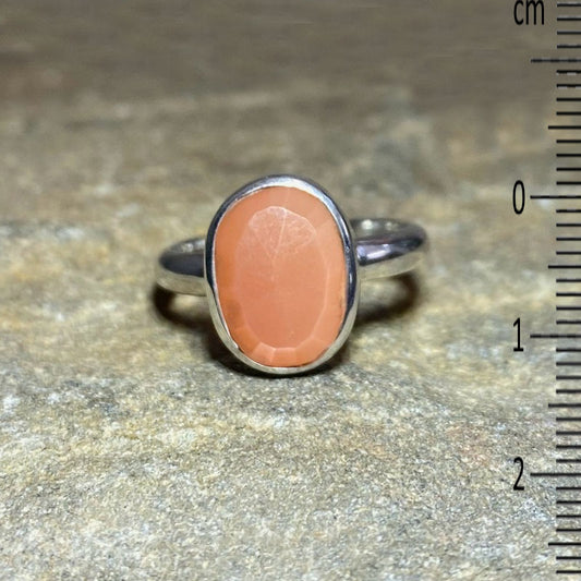 Faceted Oval Apricot Moonstone Ring- Size 8