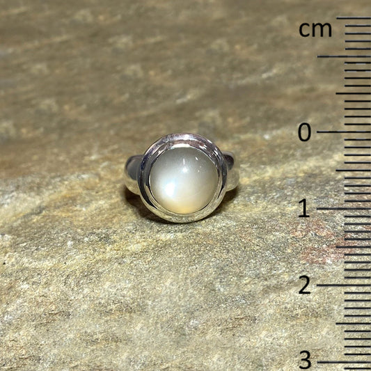 Round Grey Moonstone Ring- Size 7.5