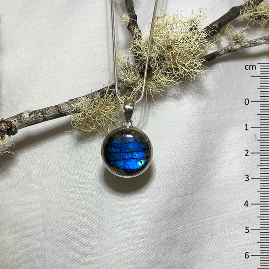 Ornate Silver Leaf Shaped Blue Flash Labradorite Pendant