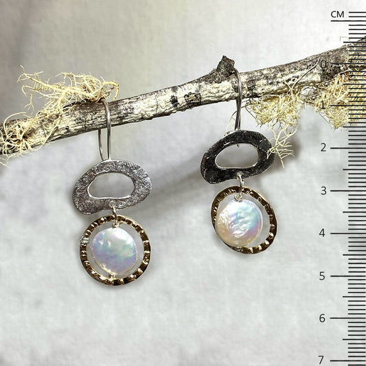 Ornate Round Sterling Silver, Gold & Pearl Earrings