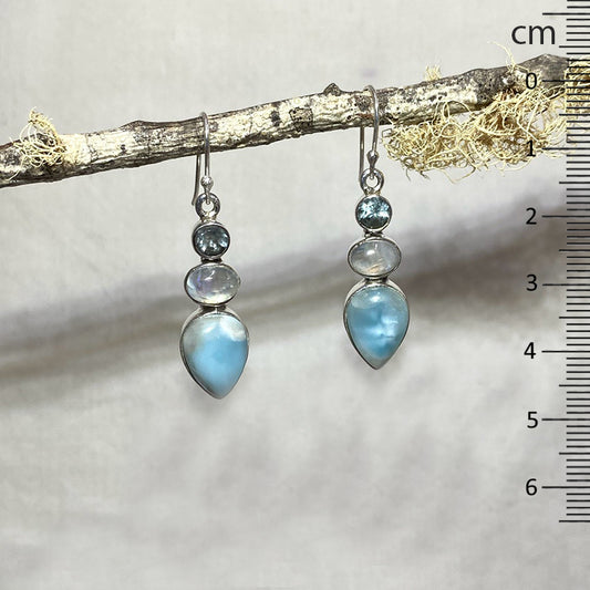 Combination Larimar, Moonstone & Faceted Blue Topaz Earrings