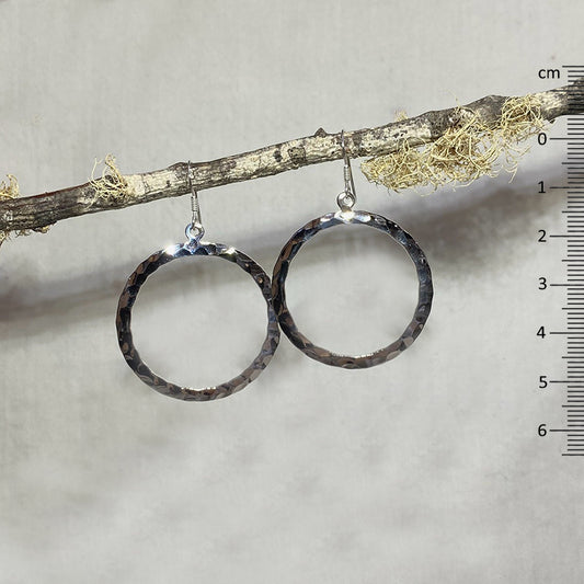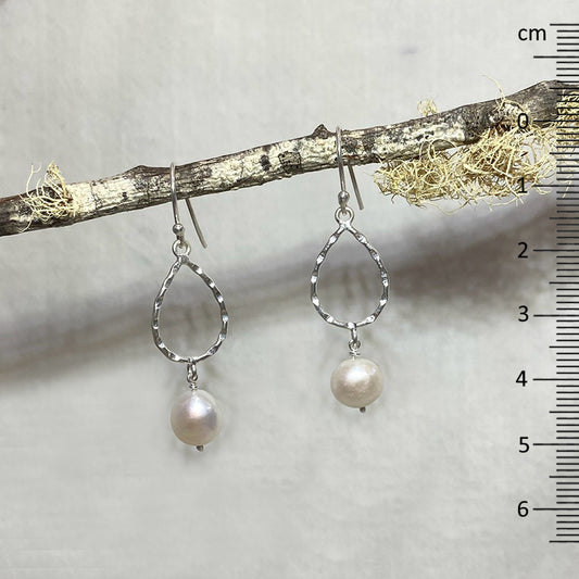 Teardrop Hammered Sterling Silver Round Freshwater Pearl Earrings