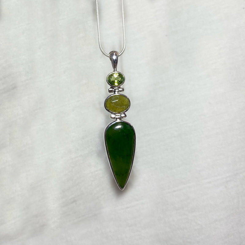 Combination Oval Faceted Peridot, Vesuvianite & Pear Shaped Canadian Jade Pendant