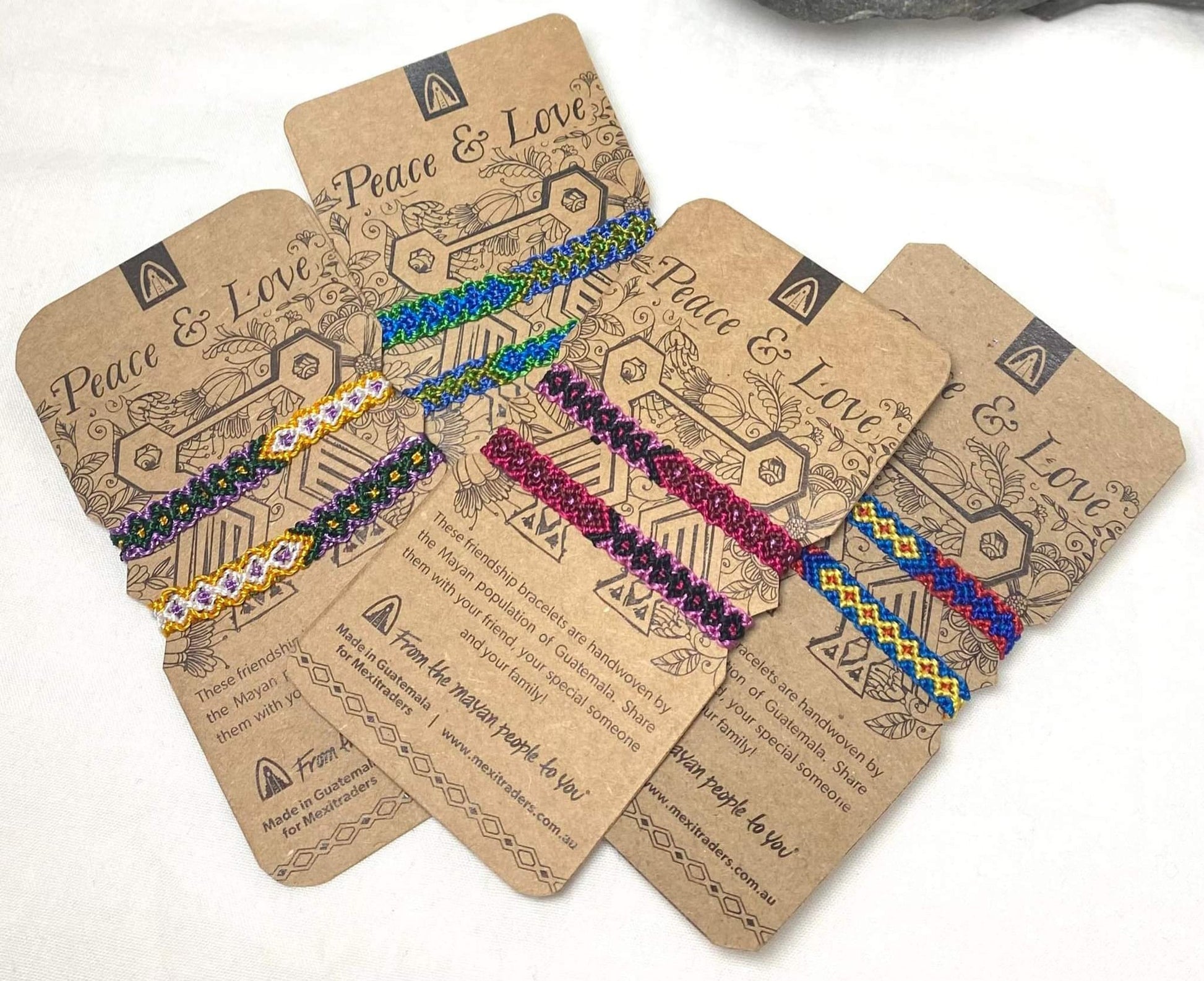 These friendship bracelets are handwoven by the Mayan population of Guatemala.
